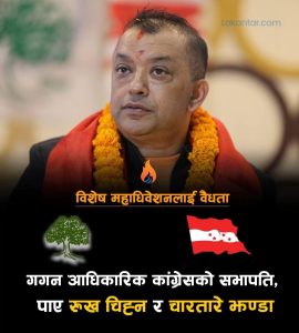 राजधानीको भृकुटीमण्डपमा पुस २७ देखि ३० गतेसम्म सम्पन्न विशेष महाधिवेशनबाट गगन थापा बहुमत महाधिवेशन प्रतिनिधिको समर्थनसहित सभापतिमा निर्वाचित भएका थिए। विशेष महाधिवेशनपछि बिहीबार बसेको केन्द्रीय समिति बैठकले गरेका निर्णयसहित आवश्यक कागजात लिएर थापा निर्वाचन आयोग पुगेका थिए।